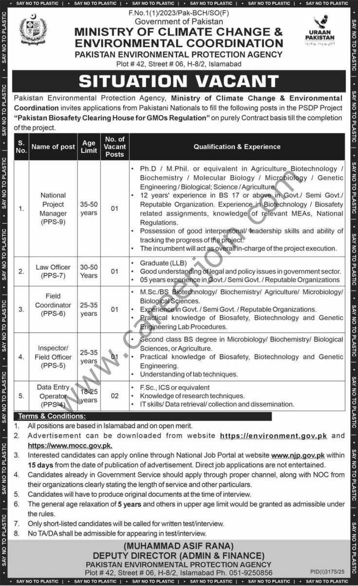 Ministry of Climate Change & Environmental Coordination Jobs October 2025