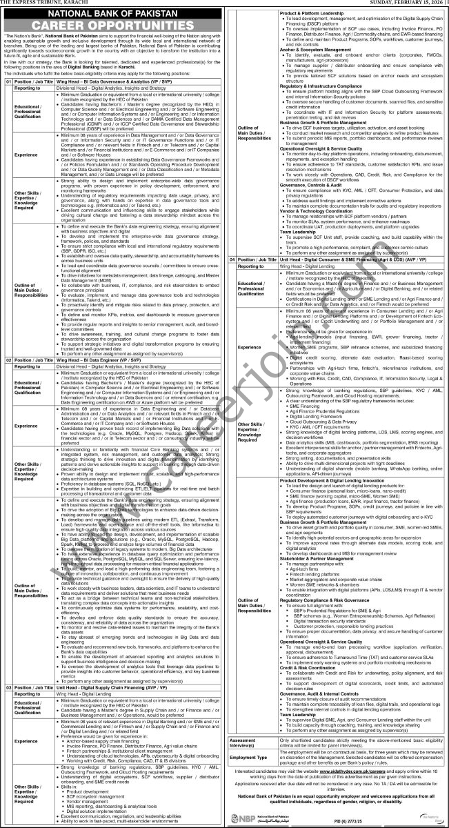 NBP National Bank of Pakistan Jobs February 2026