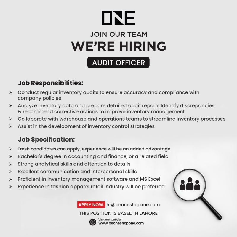 One Life Apparel Pvt Ltd , a flourishing brand in the fashion and retail world’s universe, is on the lookout for an Audit Officer with a keen eye for detail and a can-do attitude to strengthen its Karachi office. This role is perfect for fresh graduates and for experienced professionals who want to develop their careers through audit, inventory management, and retail operations.
