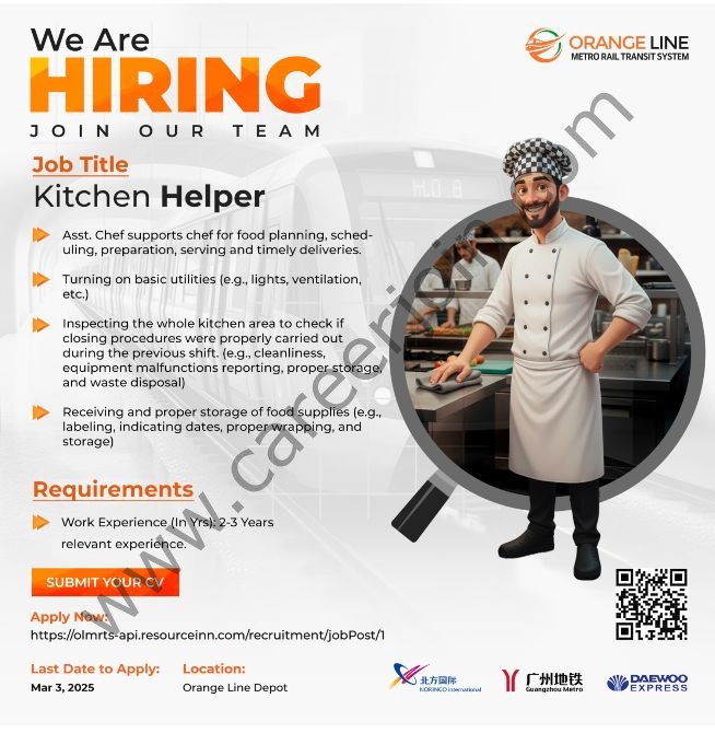 Orange Line Metro Rail Transit System (OLMRTS) is looking for ๐๐ข๐ญ๐๐ก๐๐ง ๐๐๐ฅ๐ฉ๐๐ซ to be a part of our growing team.