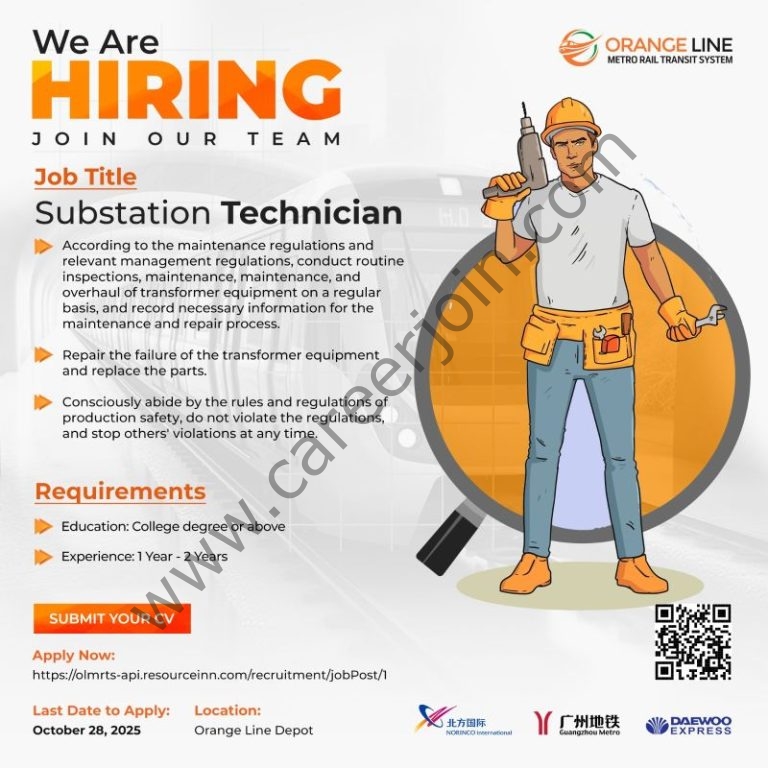 Orange Line Metro Rail Transit System (OLMRTS) is looking for a ๐๐ฎ๐๐ฌ๐ญ๐๐ญ๐ข๐จ๐ง ๐๐๐๐ก๐ง๐ข๐๐ข๐๐ง to be part of our growing team.