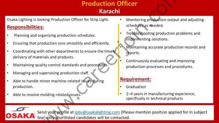 How to Apply: Send your profile at jobs@osakalighting.com (Please mention position applied for in subject line). Only shortlisted candidates will be contacted.