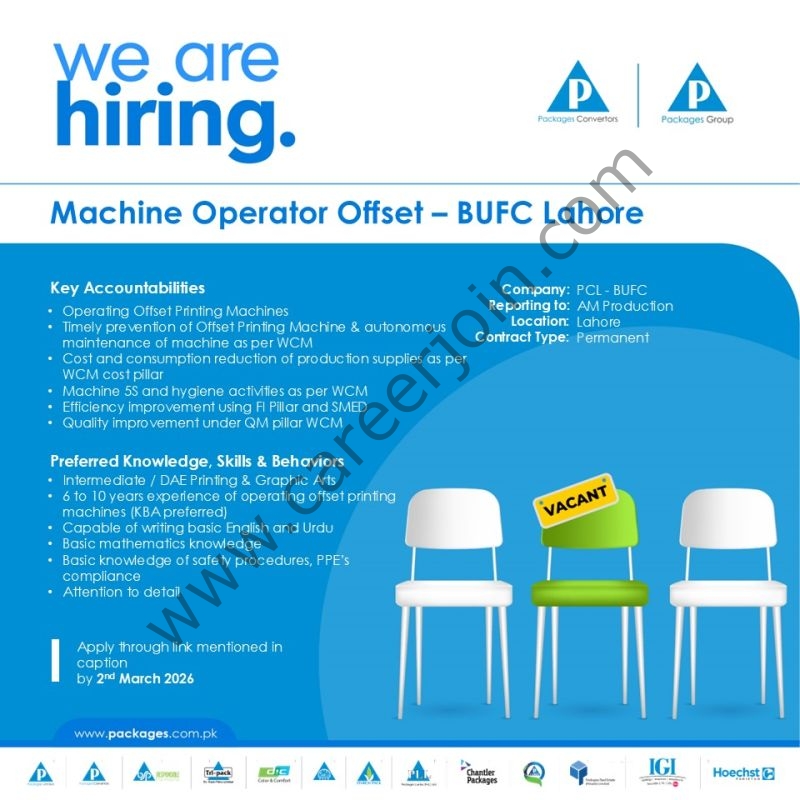 Job Title: Machine Operator Offset – BUFC Lahore