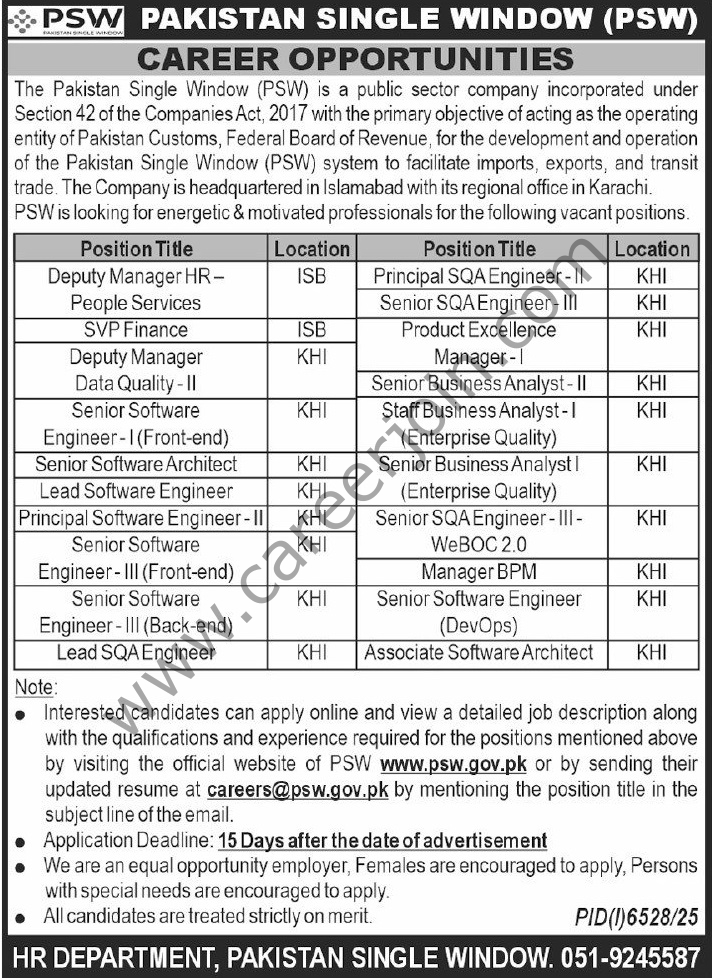 Pakistan Single Window PSW Jobs February 2026