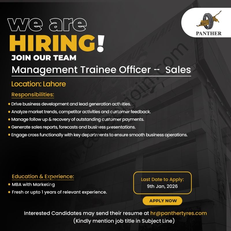 Panther Tyres Limited Jobs – Management Trainee Officer | January 2026 | Lahore
