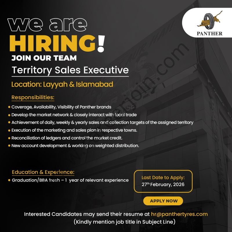 We’re hiring a Territory Sales Executive – Layyah & Islamabad