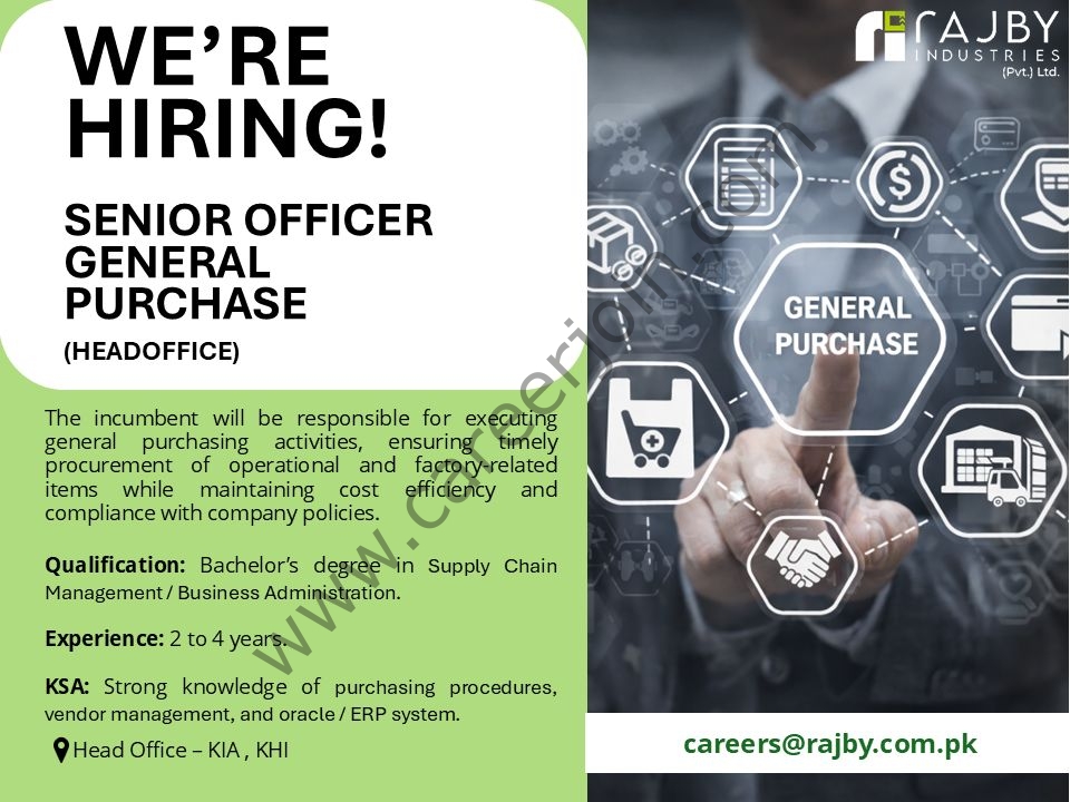 Rajby Textile Industries Jobs Senior Officer General Purchase