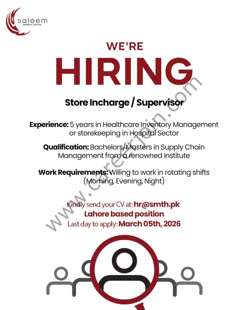 Saleem Memorial Hospital Jobs Store Incharge / Supervisor