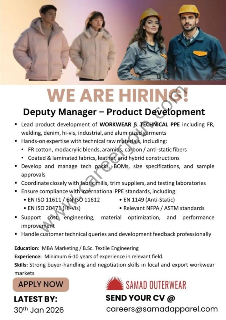 Samad Apparel Pvt Ltd Jobs Deputy Manager Product Development