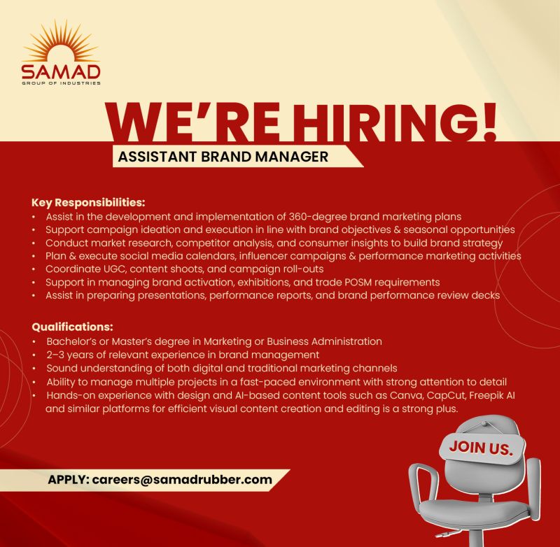 Samad Group of Industries, a leading and diverse business group in Pakistan, is offering the opportunity for a creative and results-oriented Assistant Brand Manager to be part of its marketing team in Lahore. The position is a perfect fit for marketing experts who derive satisfaction from brand development, working on integrated campaigns, and engaging consumers through digital and traditional platforms.