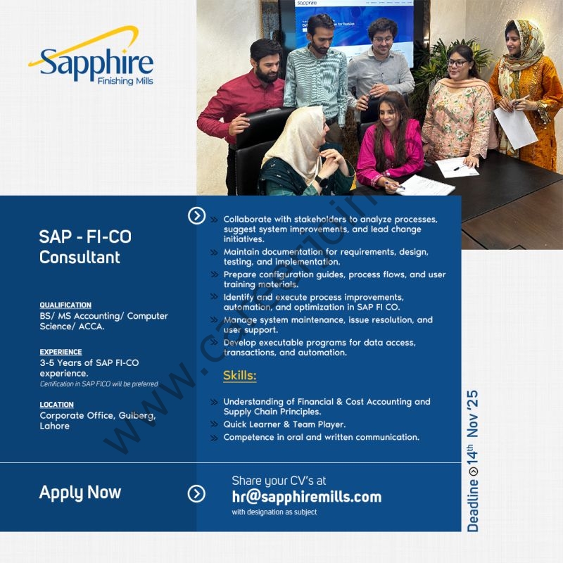 Sapphire Finishing Mills Jobs SAP FI-CO Consultant