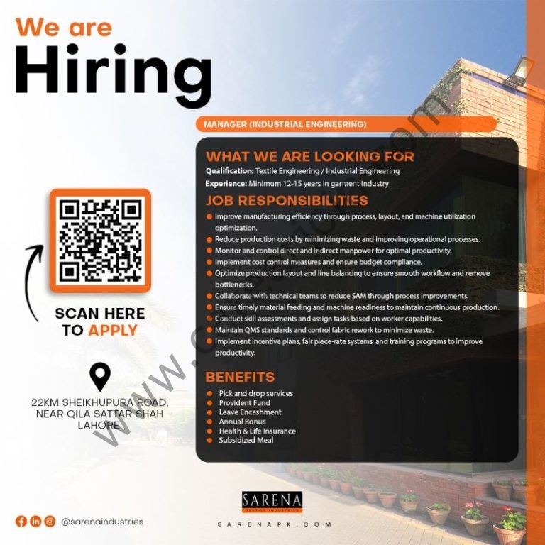 Sarena Textile Industries is looking for an experienced and performance-driven ๐๐ข๐ฏ๐ข๐จ๐ฆ๐ณ (๐๐ฏ๐ฅ๐ถ๐ด๐ต๐ณ๐ช๐ข๐ญ ๐๐ฏ๐จ๐ช๐ฏ๐ฆ๐ฆ๐ณ๐ช๐ฏ๐จ) to join our growing team.