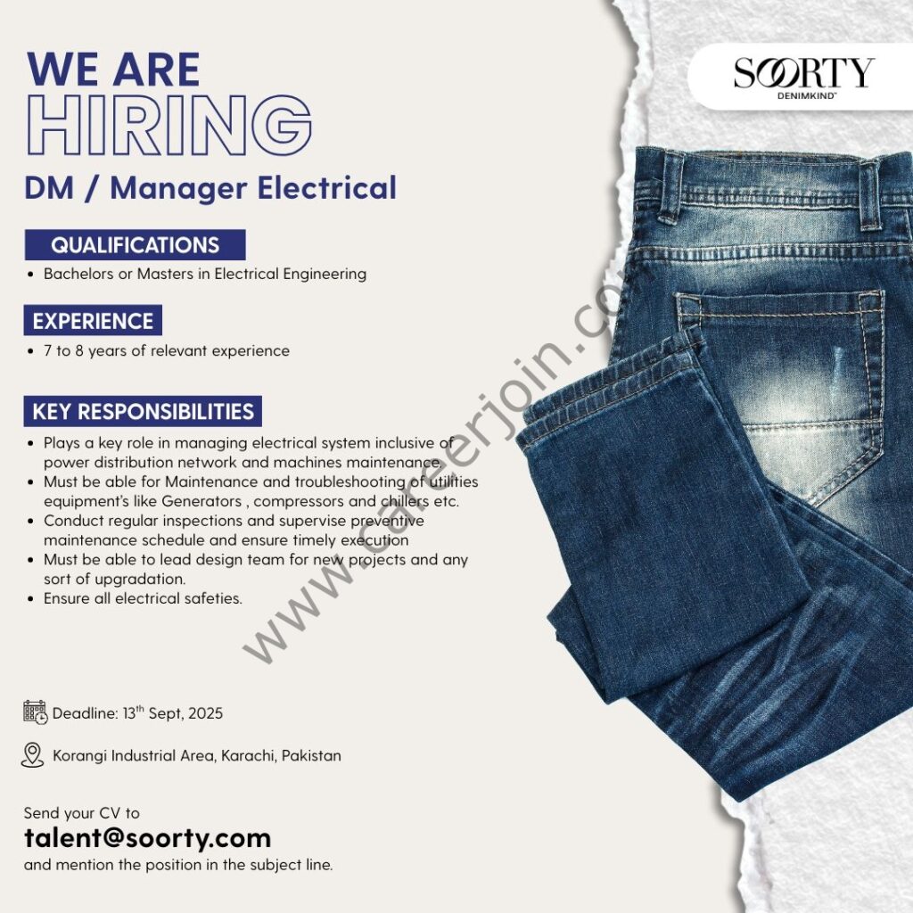 Soorty Pvt Ltd Jobs DM / Manager Electrical
