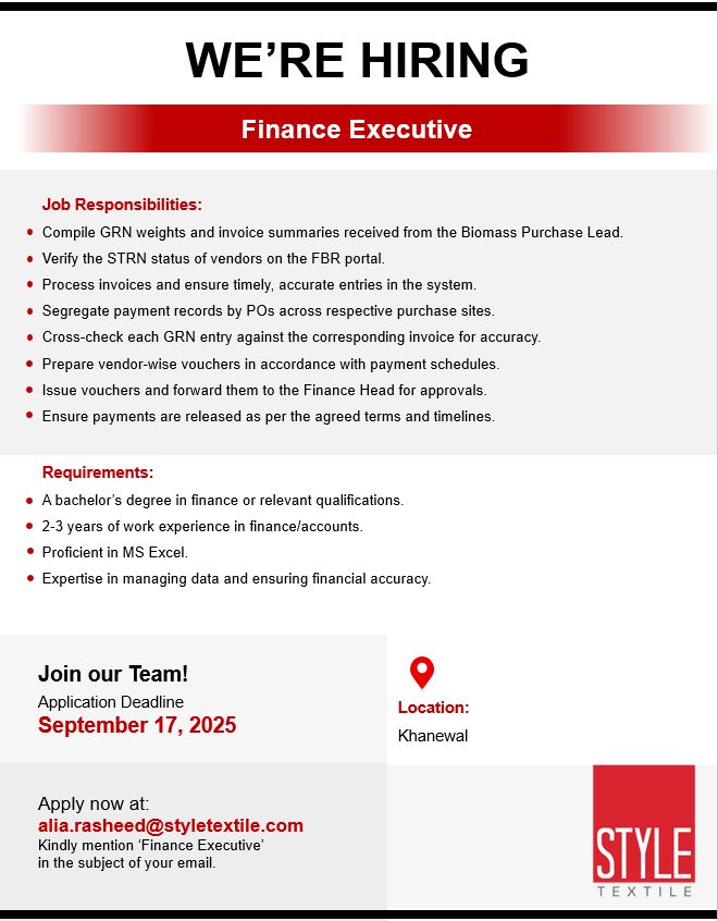 Style Textile Pvt ltd Jobs Finance Executive