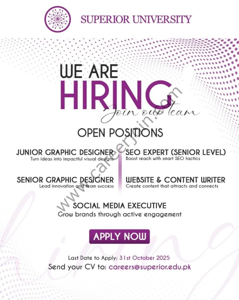 ๐ฉ Send your CV toย careers@superior.edu.pkย beforeย 31st October 2025