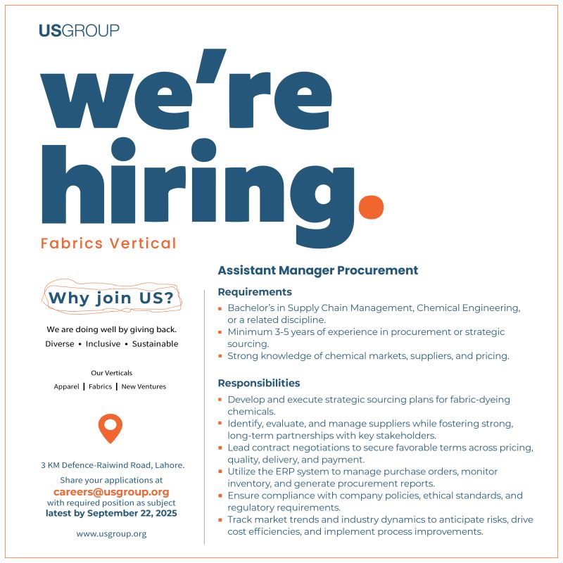 US Group is hiring for the position of “Assistant Manager Procurement”.